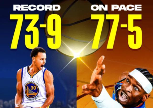 开季15胜1负!美媒预测雷霆77胜打破勇士纪录