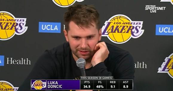 北京时间今日,在NBA常规赛中,湖人队在客场以92-121惨败于雷霆队。赛后,湖人球星东契奇出席了新闻发布会。