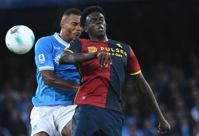 比赛刚开始不久,马尔坎达利在禁区内解围,结果皮球击中霍伊伦身上,弹向球门方向,幸好皮球稍稍偏出球门,否则就酿成大祸了。虽然那不勒斯控球优势很大,但是,面对热那亚的防守,很难创造出像样的机会。